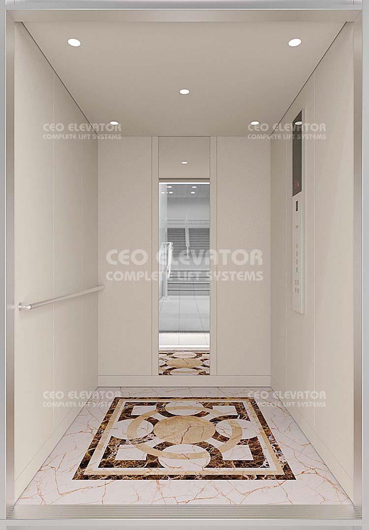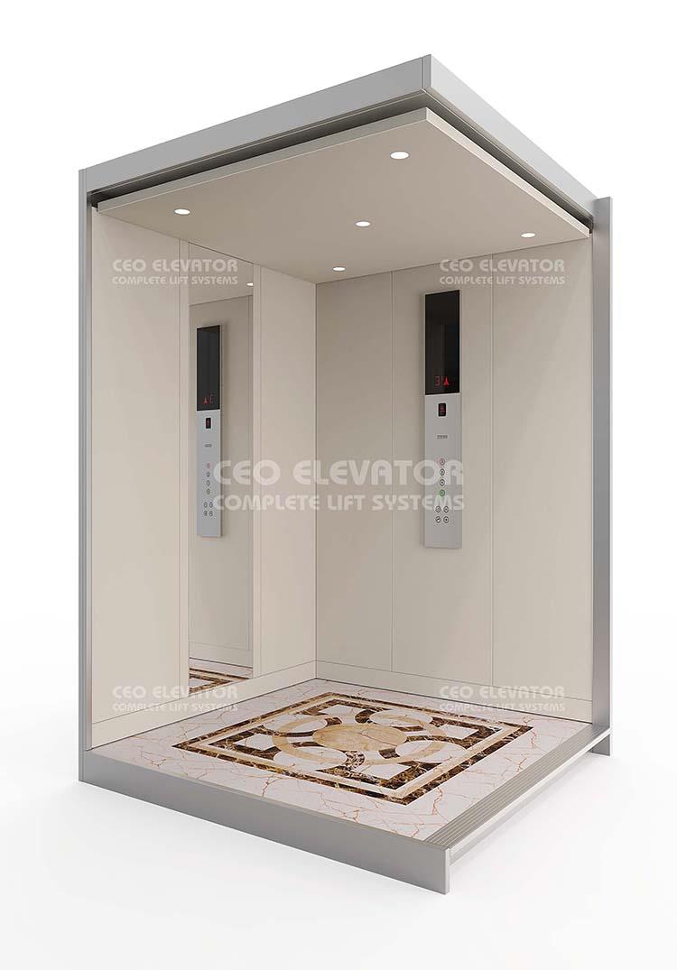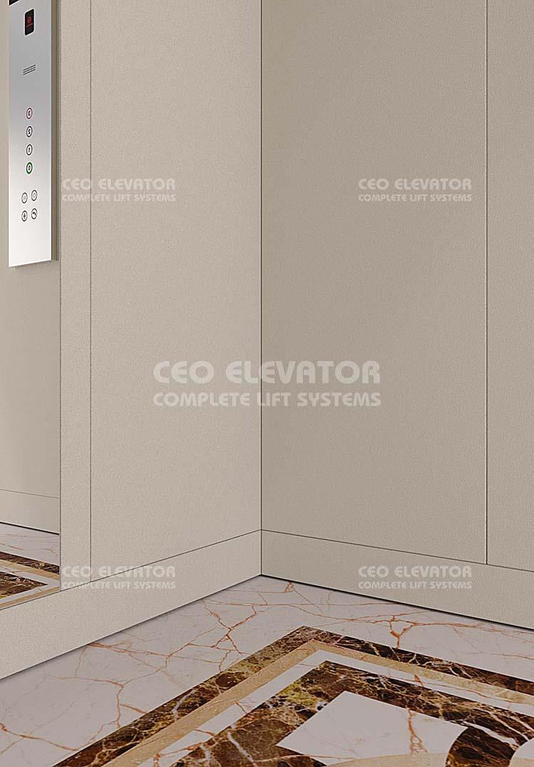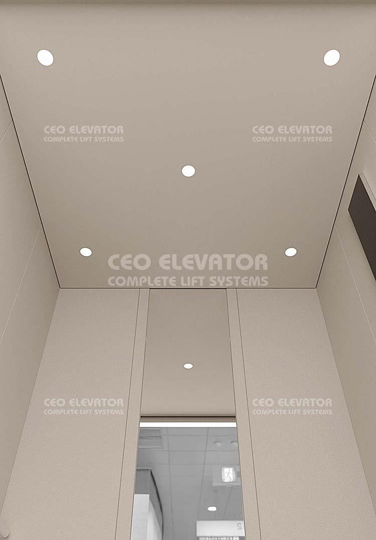 CEO 170 Elevator Cabin Cabin: Ral 1013 Cabin Floor: PVC Cabin Ceiling: Spot Light Cabin Accessories: Ral Painted Cabin Mirror: Full Height Our products comply with EN81-20 and EN81-1 standard. Color and patterns may vary in application. All right reserved.